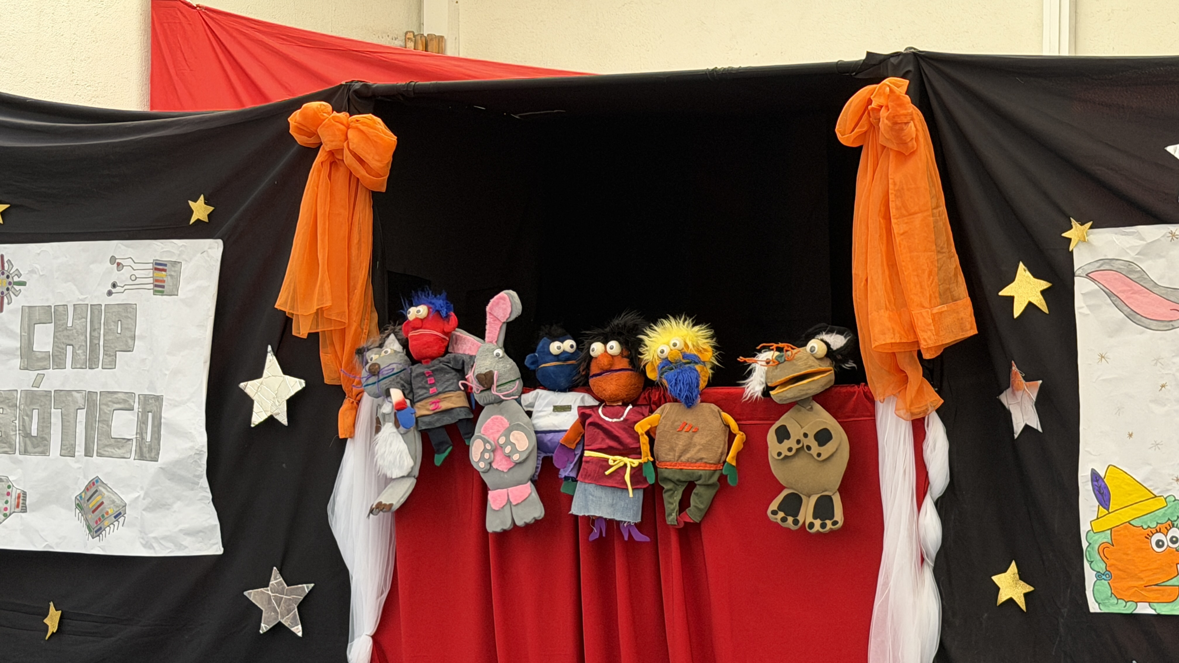 Los materiales utilizados son muchos y variados: goma espuma, fieltro, telas, cartulinas y cualquier cosa que nos pueda servir. Después de una costosa fabricación (nuestro muñeco no se hace en un día, tardamos semanas), y cuando el muñeco está terminado es la hora de elaborar nuestra obra, la cual vamos a representar para el resto del colegio y a las familias. Entre todos los componentes del taller, nos ponemos de acuerdo y escribimos la obra. Una vez escrita, toca la parte más técnica, grabarla. Para ello contamos en el colegio con las personas y el material necesario para grabar con nuestras propias voces el guión escrito. En este momento también se incorpora la música y los efectos especiales que acompañarán a nuestras voces. No podemos olvidarnos de fabricar también los decorados pertinentes y por último, debemos ensayar una y otra vez nuestra obra.
