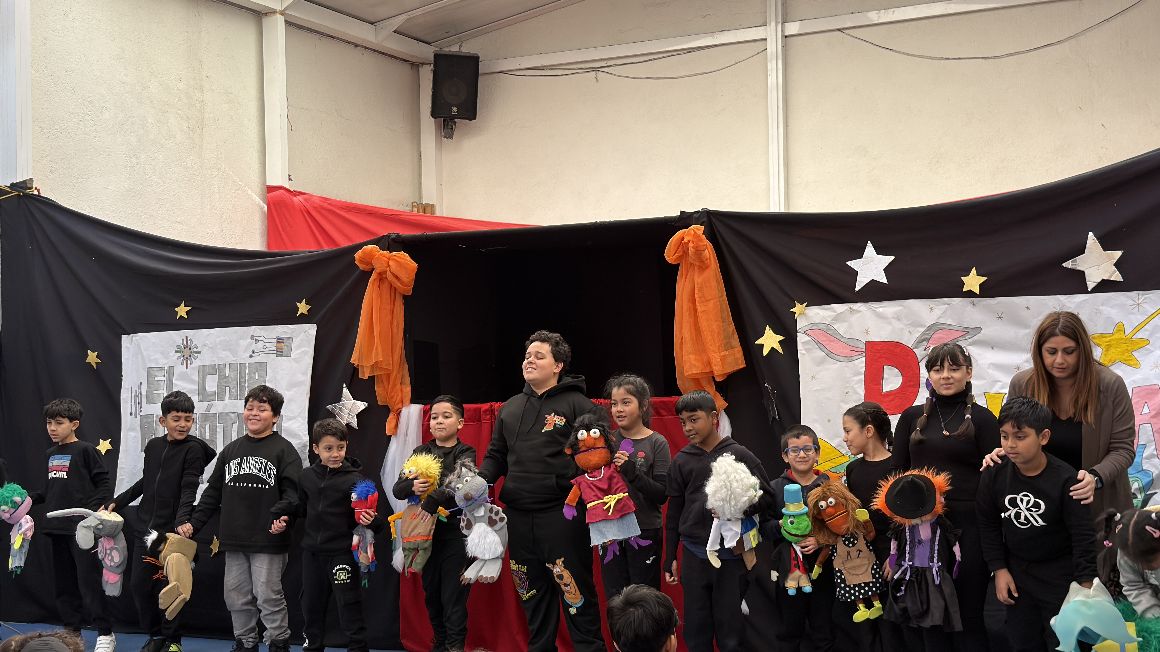 Cuando todo está preparado y muy nerviosos pero con una gran ilusión, representamos nuestra obra para todos los niños y niñas del colegio, además de las familias que quieran venir. El resultado siempre es un éxito.